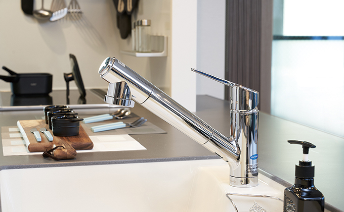 ミネラル成分はそのままに他の不純物を除去します。水と湯水混合の境目でレバーのクリック感があるためお湯のムダ使いも少なくなります。