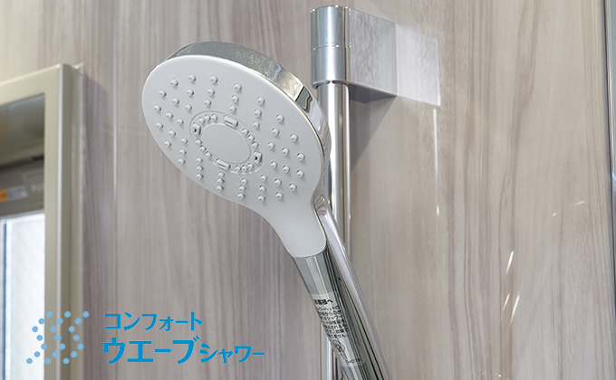 独自のノズルで大粒の水玉をスイングしながら勢いよく吐水。スプレーシャワーとミックスし、適度な刺激のある浴び心地で節水も実現しています。