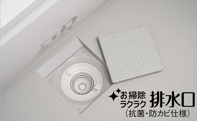 排水口まわりの滑りやカビ汚れを抑えます。髪の毛を浮かしてまとめるヘアキャッチャーで掃除も簡単です。