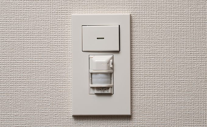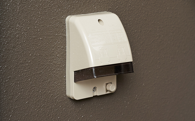 玄関には人の動きを感知して点灯する人感センサーライトを設置。夜間の帰宅時など暗がりでスイッチを探す必要がありません。