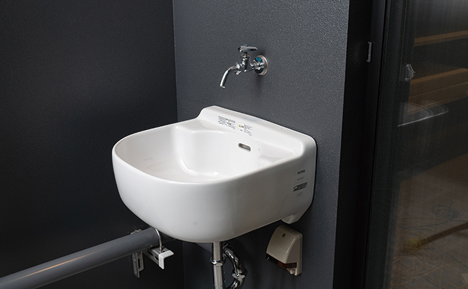 バルコニーのスロップシンク上に、明るく照らすスポットライトを設置。夜間の作業の安全でスムーズです。