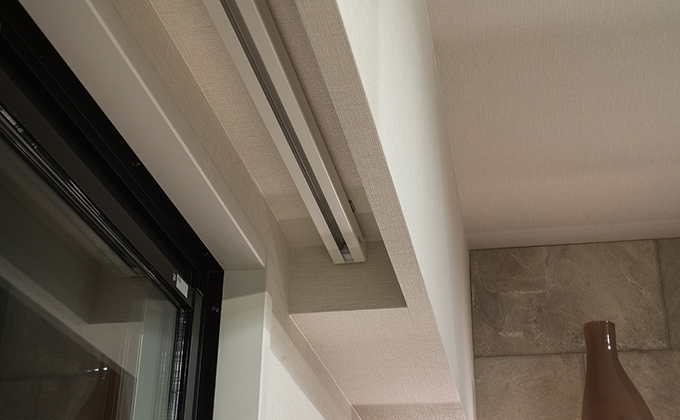 リビングの開口部に、高級感を漂わせるカーテンボックスを設置しています。お気に入りのカーテンをオーダーしてナイトタイムを優雅に。