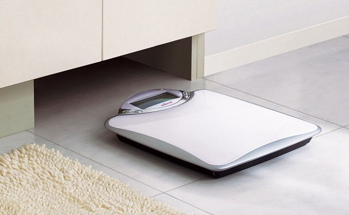 健康管理に欠かせないヘルスメーターを巾木部分にすっきり収納。使うときだけサッと取り出せます。
